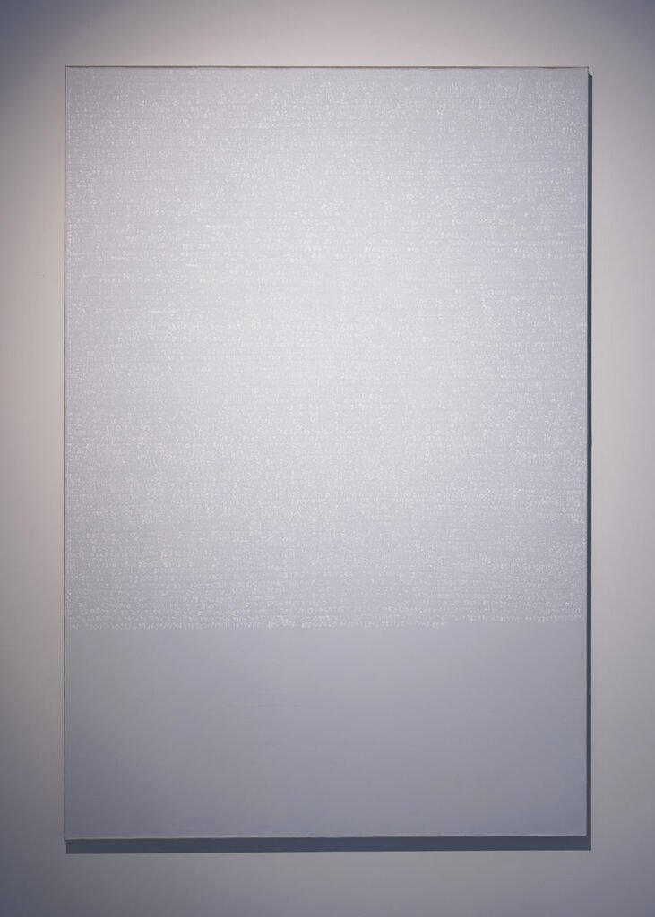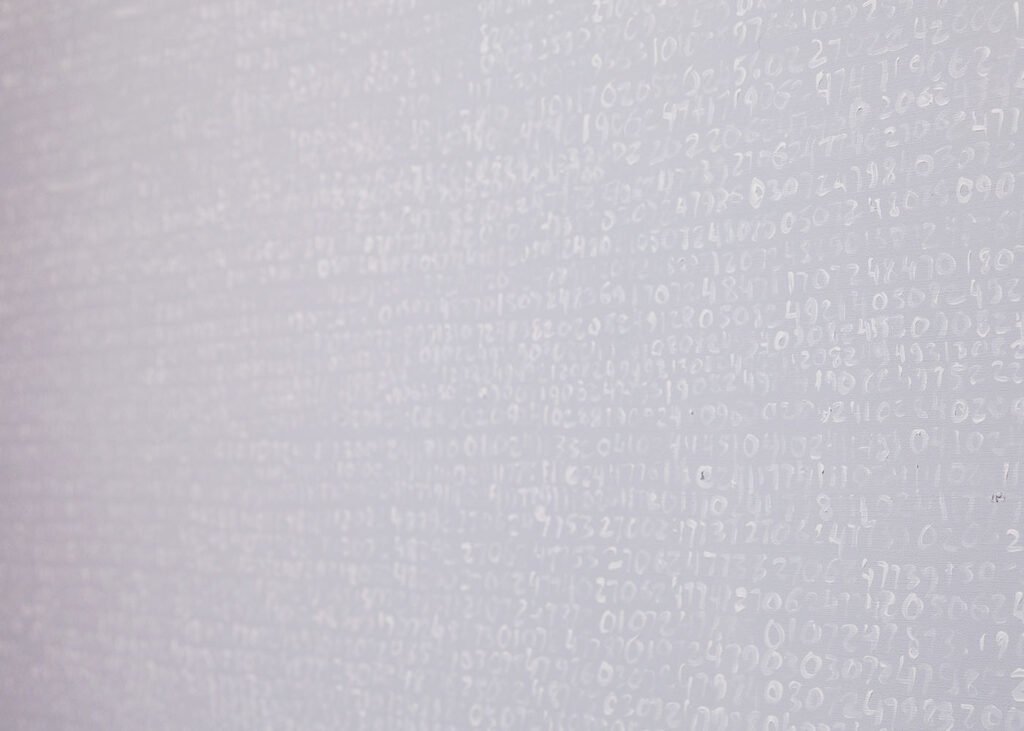 Obraz prezentowany na wystawie jest wynikiem współpracy dwóch twórców: Waldemar Tatarczuk realizuje koncepcję plastyczną opracowaną przez Pavlo Kowacha. Praca ta dialoguje zarówno z dorobkiem samego Kovacha, jak i z twórczością polskiego artysty Romana Opałki (1931–2011). W połowie lat 60. Opałka rozpoczął malarski projekt zatytułowany „OPALKA 1965 / 1–”, znany także jako „Program” – tak nazywali go krytycy i sam artysta. Opałka realizował go przez ponad trzy dekady, aż do swojej śmierci. W cyklu tym malował białą farbą na płótnach kolejne liczby, poczynając od „1”. Pierwszy obraz powstał na czarnym tle; w kolejnych artysta kontynuował odliczanie na tle szarym, które z każdym nowym płótnem stawało się coraz jaśniejsze, aż zbliżyło się do bieli.